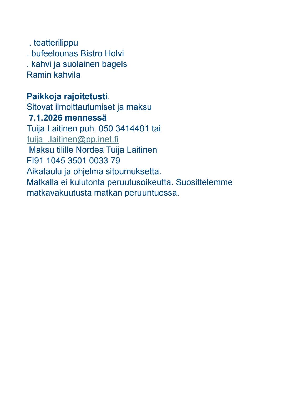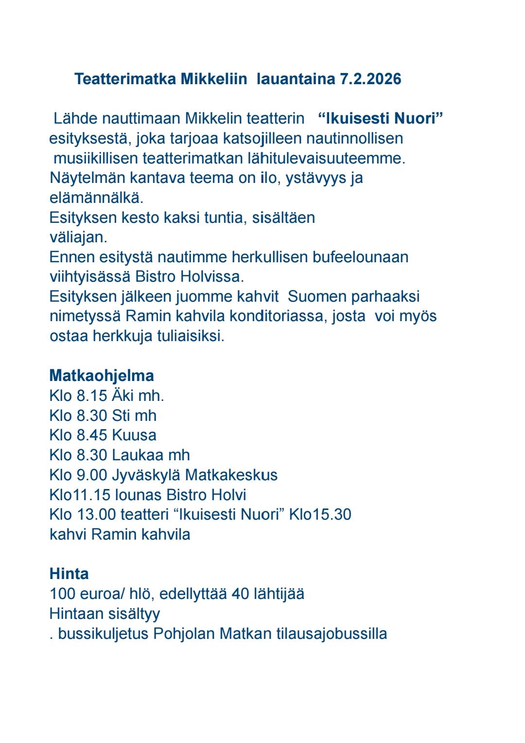Mikkelin teatteriin matka "Ikuisesti nuori"